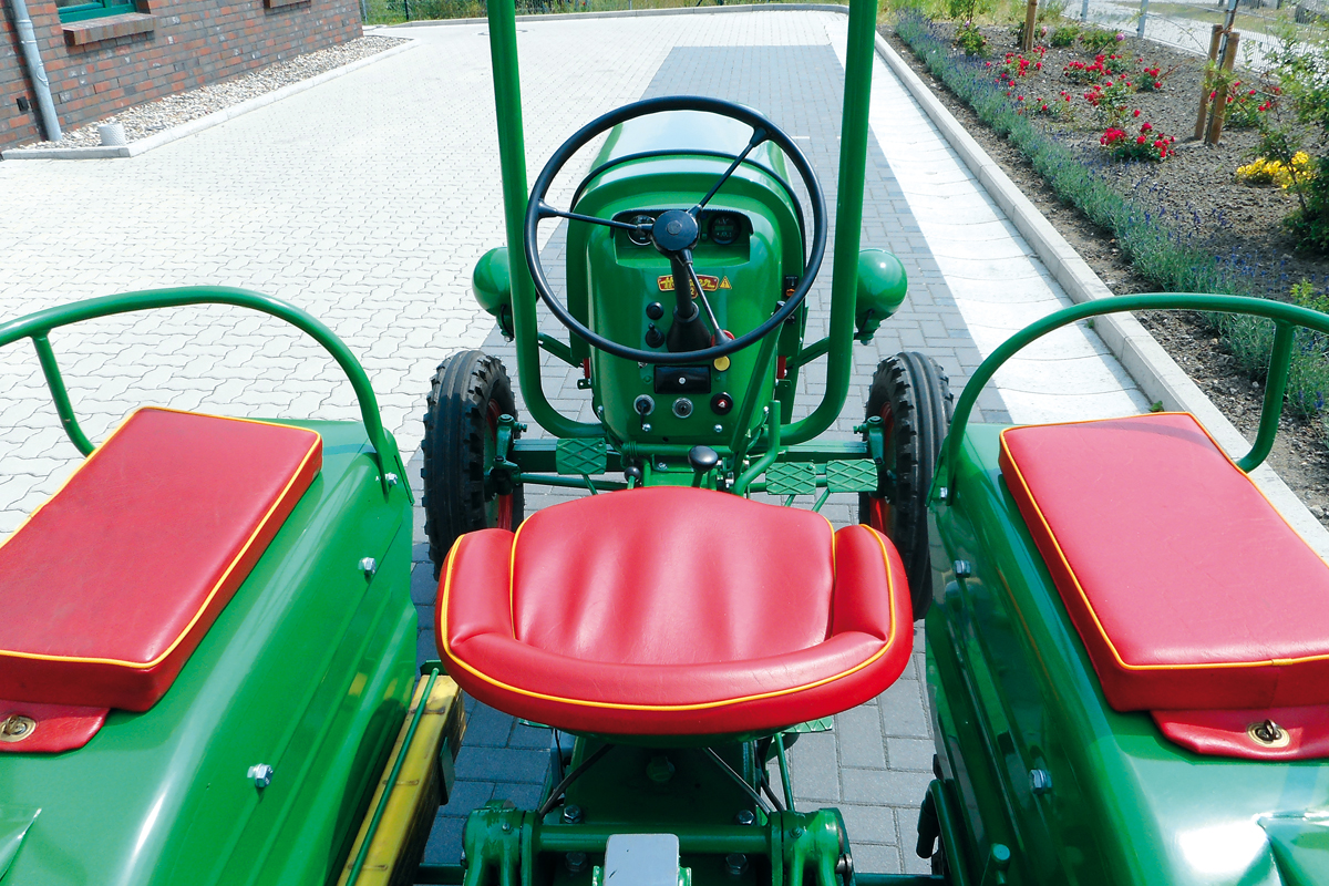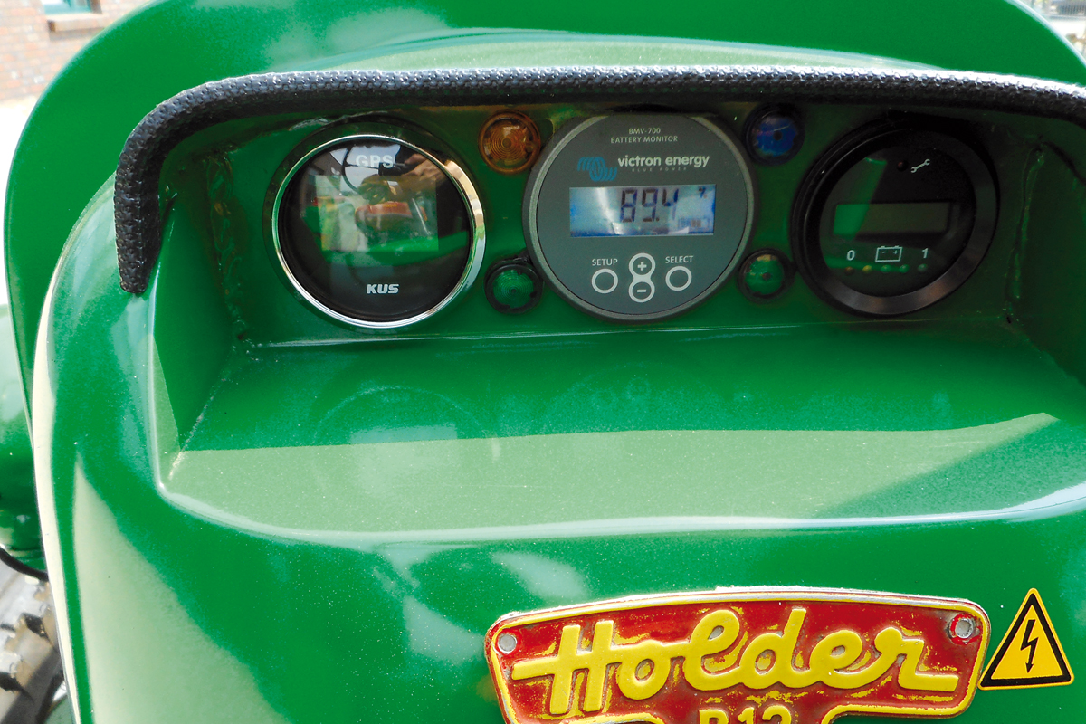 The small holder with its 13 kW electric motor shows very fast acceleration and reaches with 40 km/h a particularly high top speed for a tractor. As an open vehicle, this approach and the roaring headwind offer the pilot and all passengers pure fun in electrified tractor driving.
