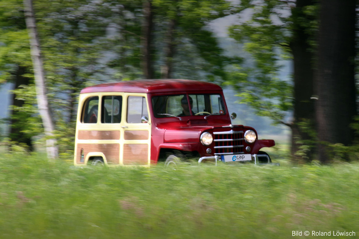 The Willy‘s Jeep Station Wagon was built in 1951 is a rarity - and converted to a fully electric car, it is a unique item. The original switches and levers were converted to control the new technology. For example, the choke lever is now used as an authentic switch to turn the recuperation on or off.